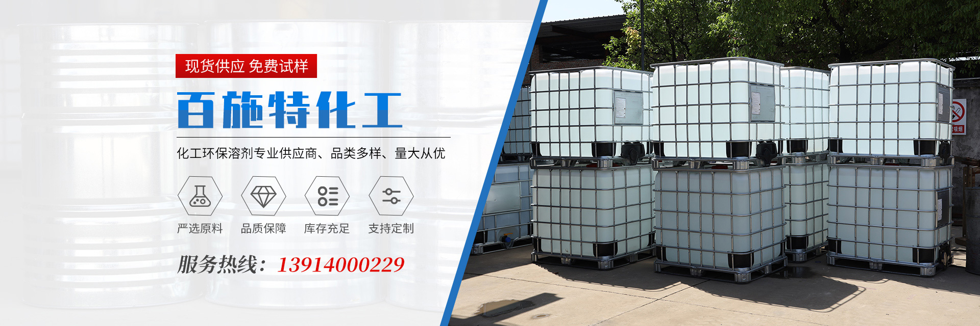 原料供應及時充足,包括苯類,酯類,醇類,醚類,酮類,烴類及單體等數十品種進行裝分批發零售。